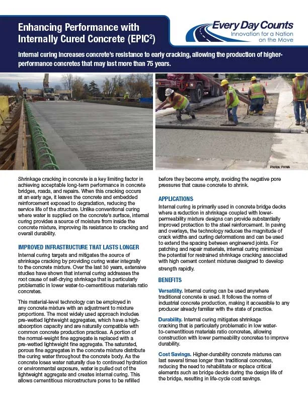This growing list of applications highlights the versatility and effectiveness of internal curing for improving the performance of concrete infrastructure across a variety of climates and conditions.